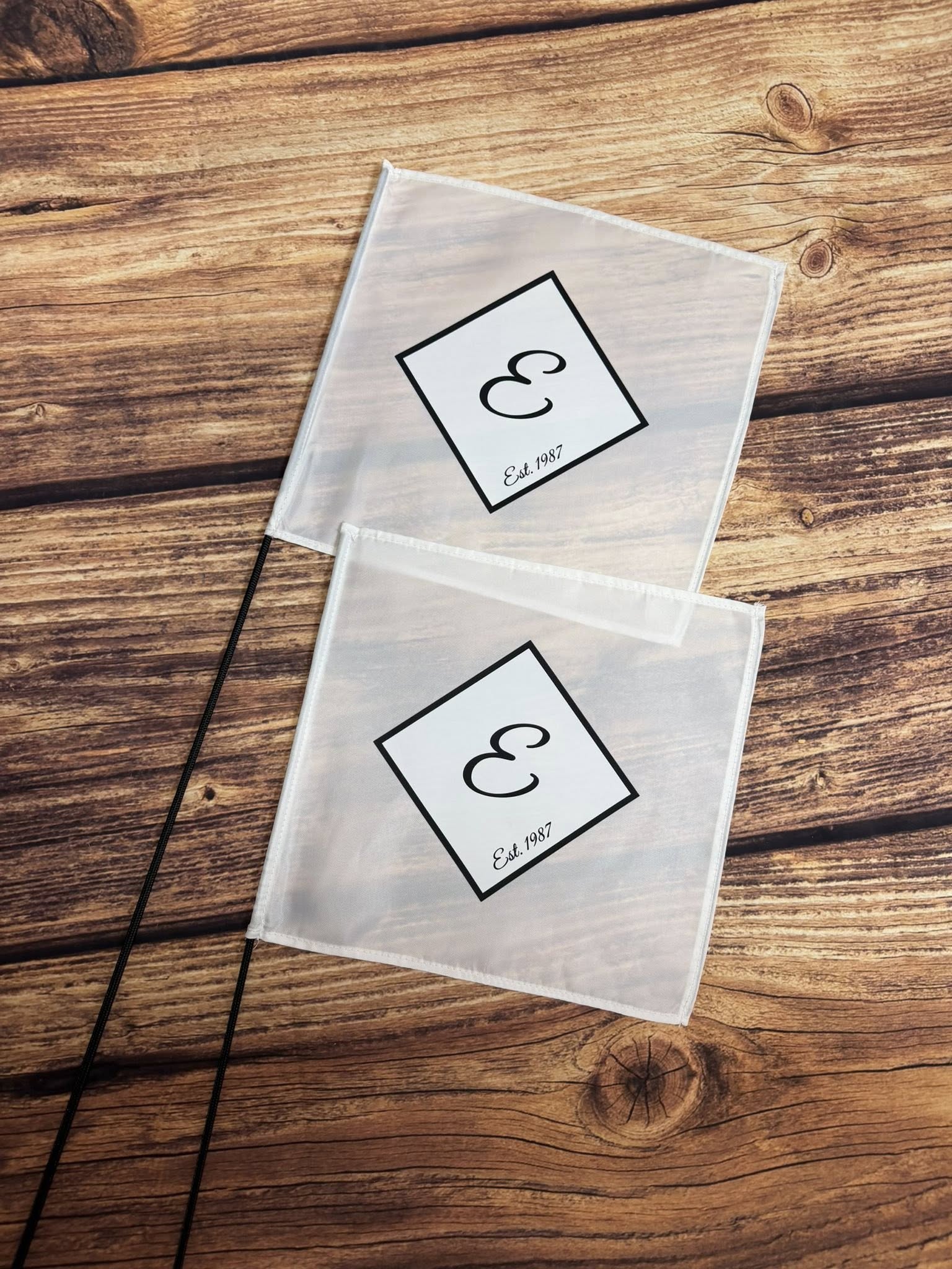 Email Logo and quantity to Tinroofboutiquetx@gmail.com or text 979-218-6056 to order if buying more than 20 flags.